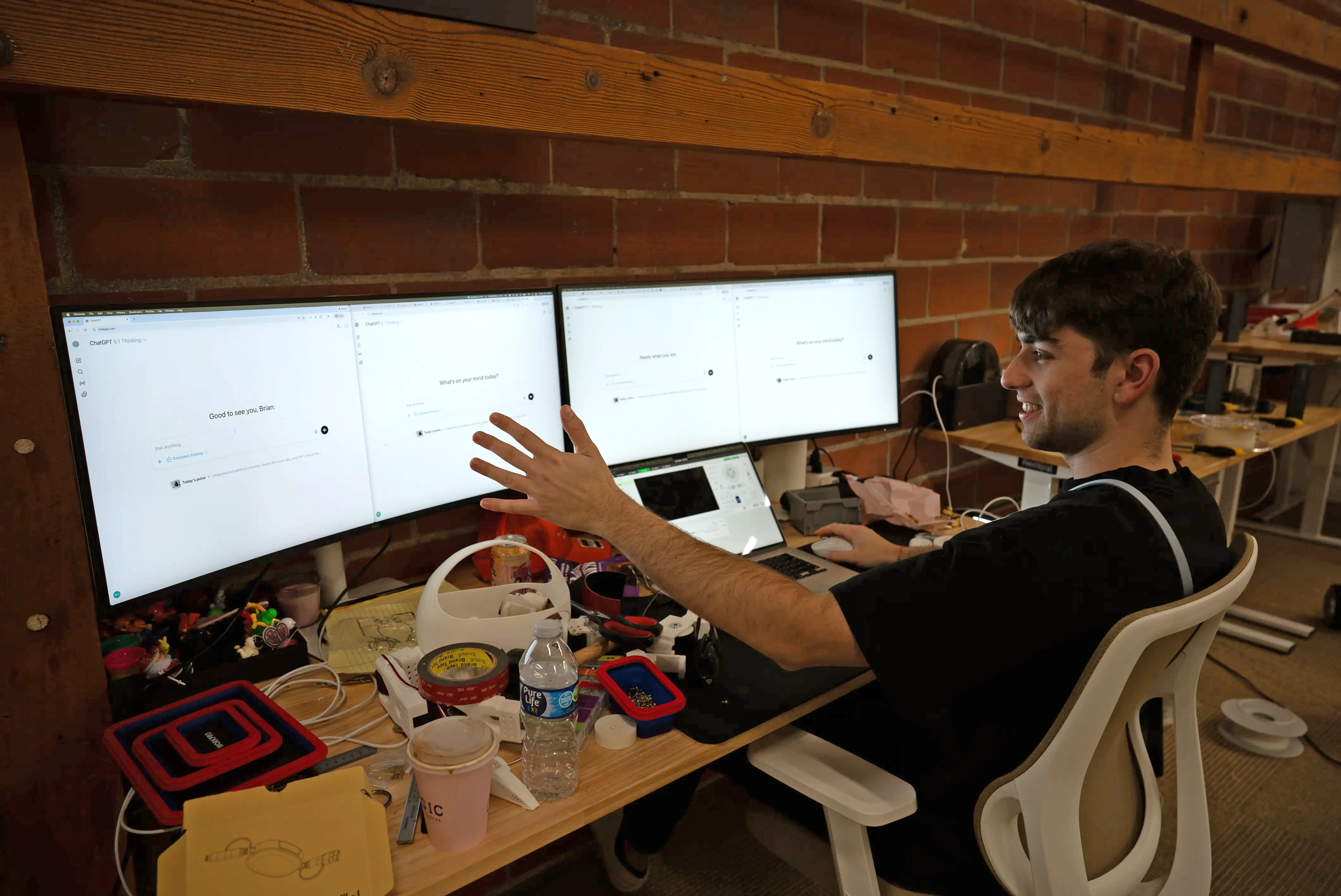 Brian is kind of a material girl when it comes to consumer hardware. He'll buy anything he thinks he might be able to learn from, even if he can't see an immediate use for it. He bought every retractable USB cable from Amazon for inspiration on how to design a robot arm that can freely move up and down. He also has the highest monthly Cursor bill I've ever seen, and $200/month subscriptions for both Claude and ChatGPT. Even though $200 may sound like a lot for SaaS, considering ChatGPT costs billions of dollars to train and serve, with Brian's level of usage, he's actually the one profiting here.