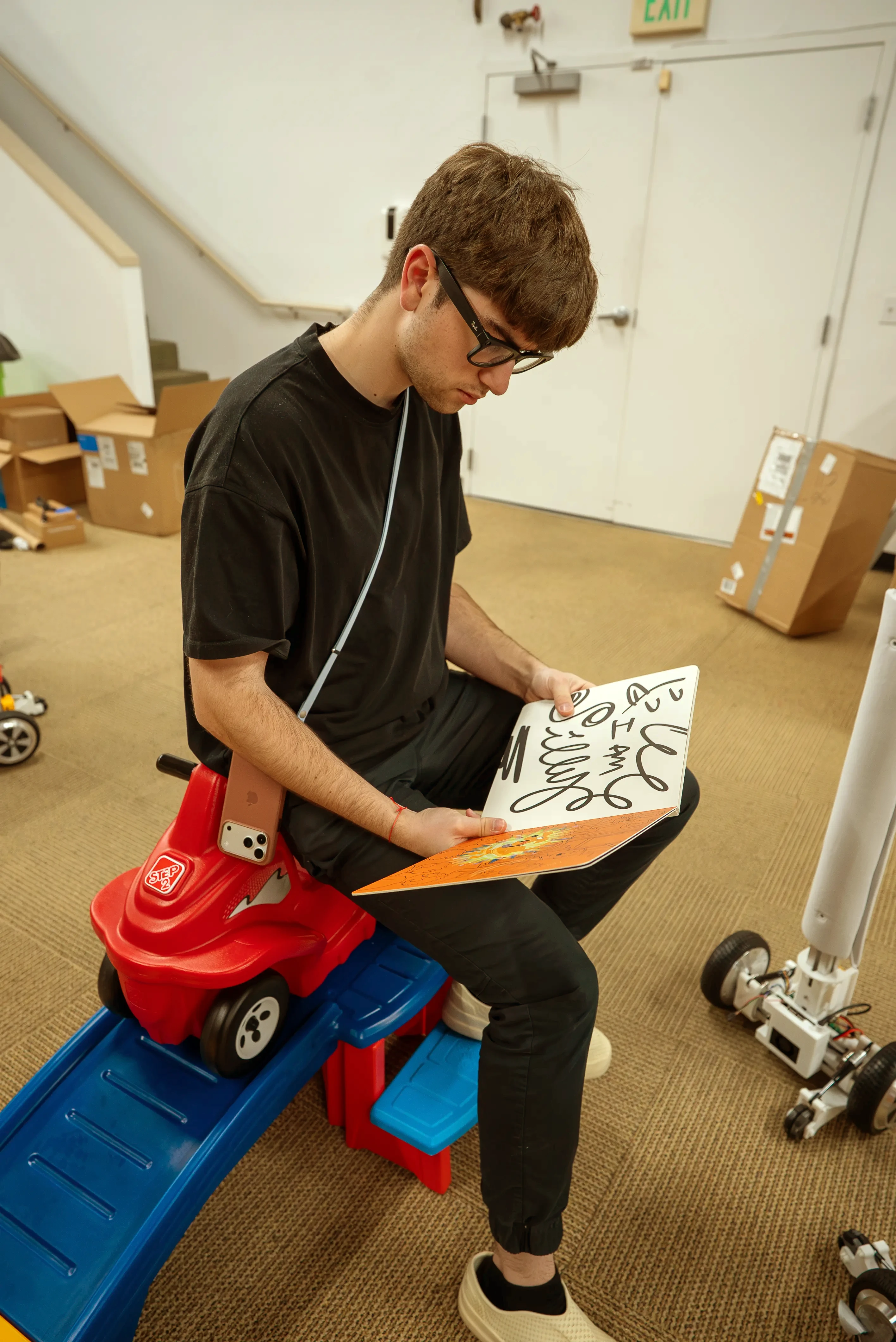 "Look at this thing! Do you know all the stuff I'm going to learn after taking this apart?" he says, excitedly holding a Unitree robot dog in his hands.