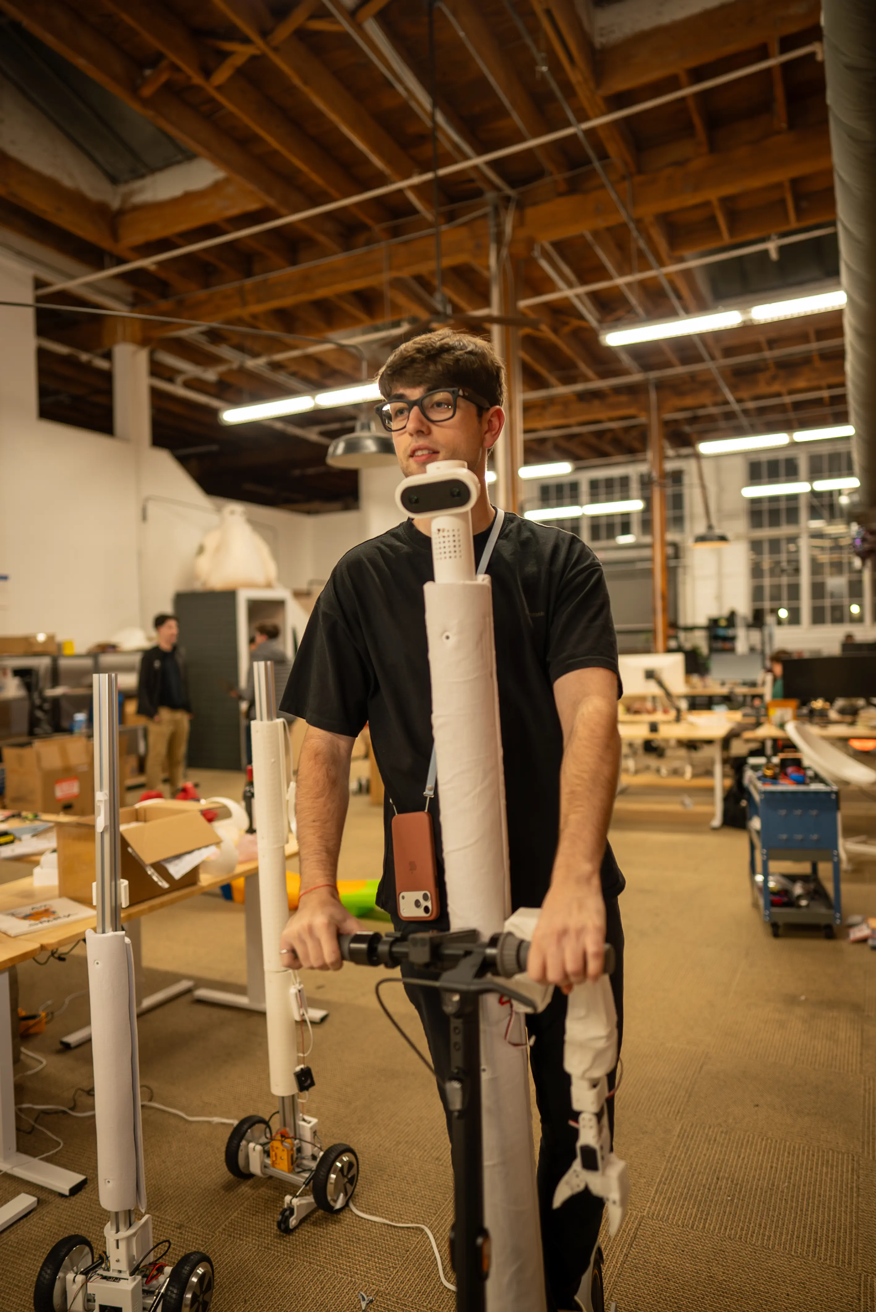 After graduating, he moved to San Francisco and started renting out a factory to make robots full-time. It's pretty much the same as his apartment, but scaled to 5000 sqft.