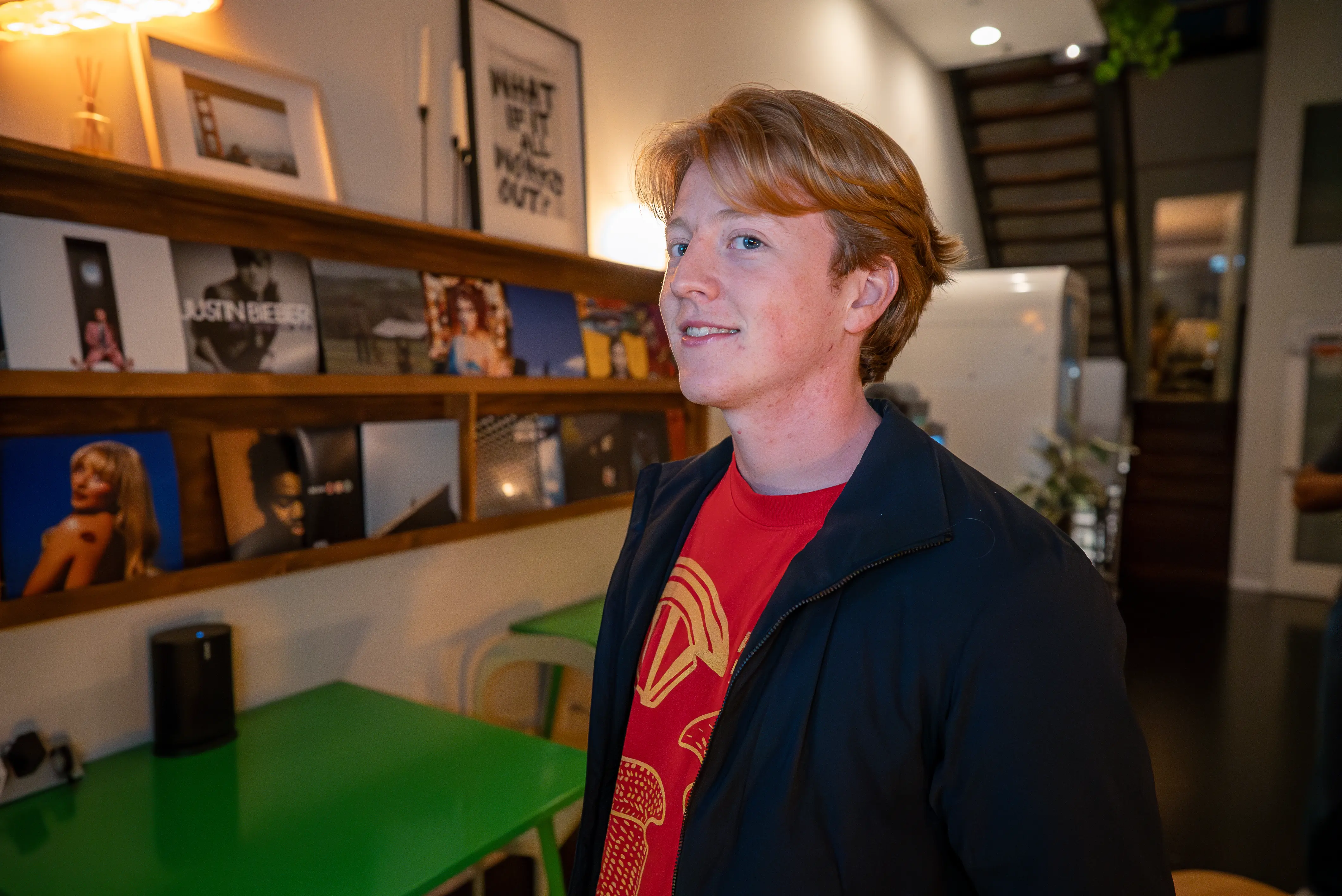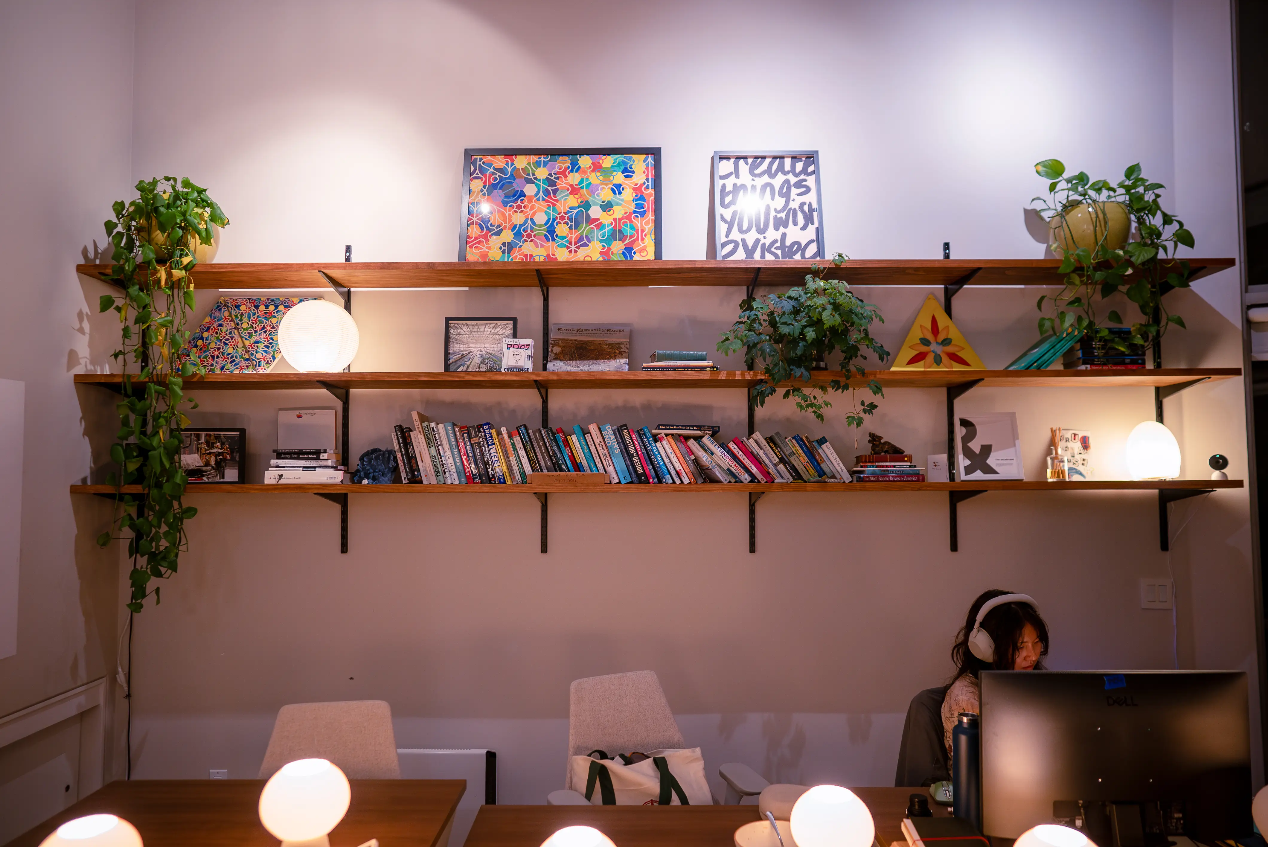 They have a massive studio space where each of the three floors is designed like a space you might work for yourself in. A poster that says "What if it all works out?" greets you every time you enter. There's a library, cafe, and dorm room littered with plants and the favourite albums of past sprinters; other people who gave their dreams a shot. The entire space seems to say, "If they did it, so can you."