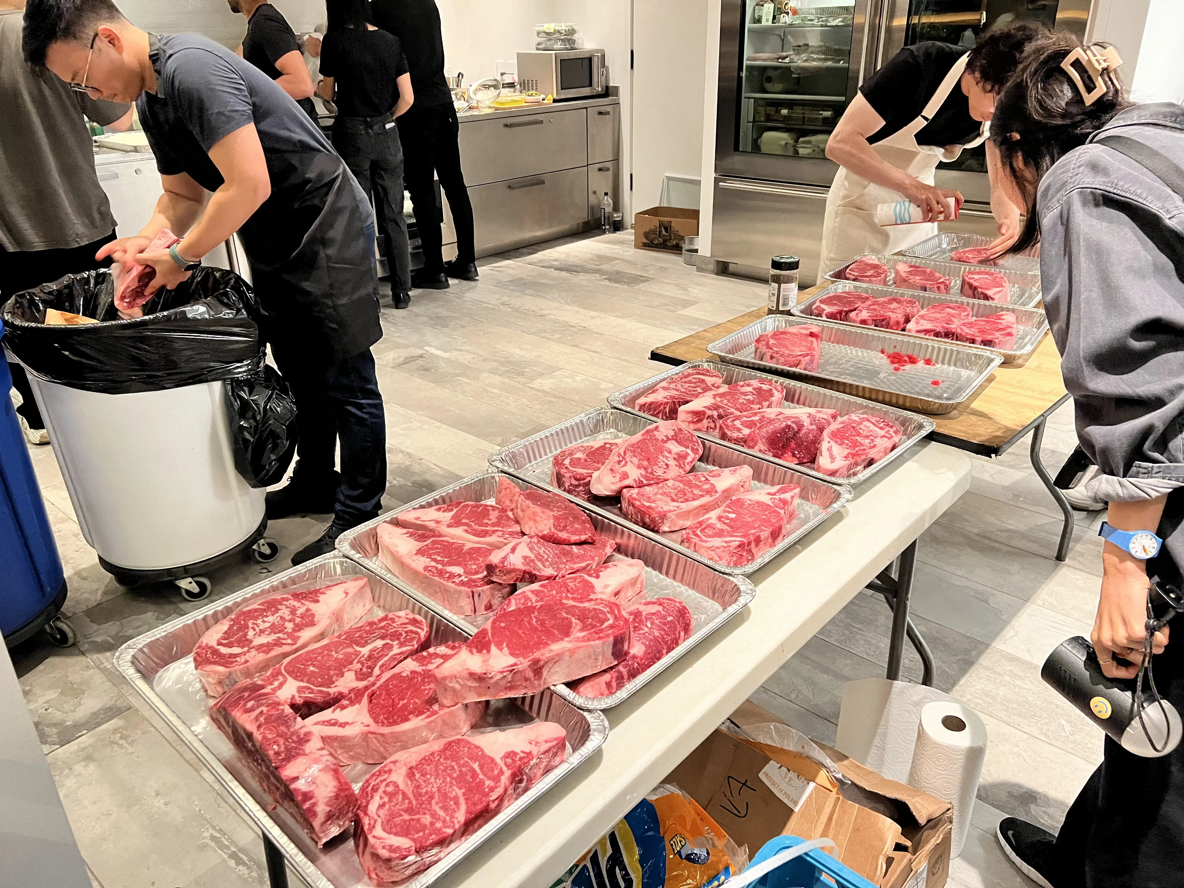 It was near impossible to find a venue in their budget, but one of their friends connected them to a billionaire who gave them a warehouse for free. They had to serve wine but New York City requires liquor to be purchased only through authorized distributors, even if you get a license. Riley was about to break the law by buying 40 bottles from Costco when his friend said he knew a guy then called up one of the biggest distributors in the city and they took care of it. There wasn't enough stove space to cook for everyone so they bought a bunch of toaster ovens to make the appetizers. They found their steak supplier off of Reddit and didn't get a chance to try it before buying 100 pounds for incredibly cheap, and everything ended up tasting fine. They had no staff but 60 of their friends came through to help. They flew across the country to help cook, wait tables, usher guests, stand in the rain with signs that made it look like Drake was inside, fake a marriage proposal, put out fires, and everything else that goes into running a restaurant.