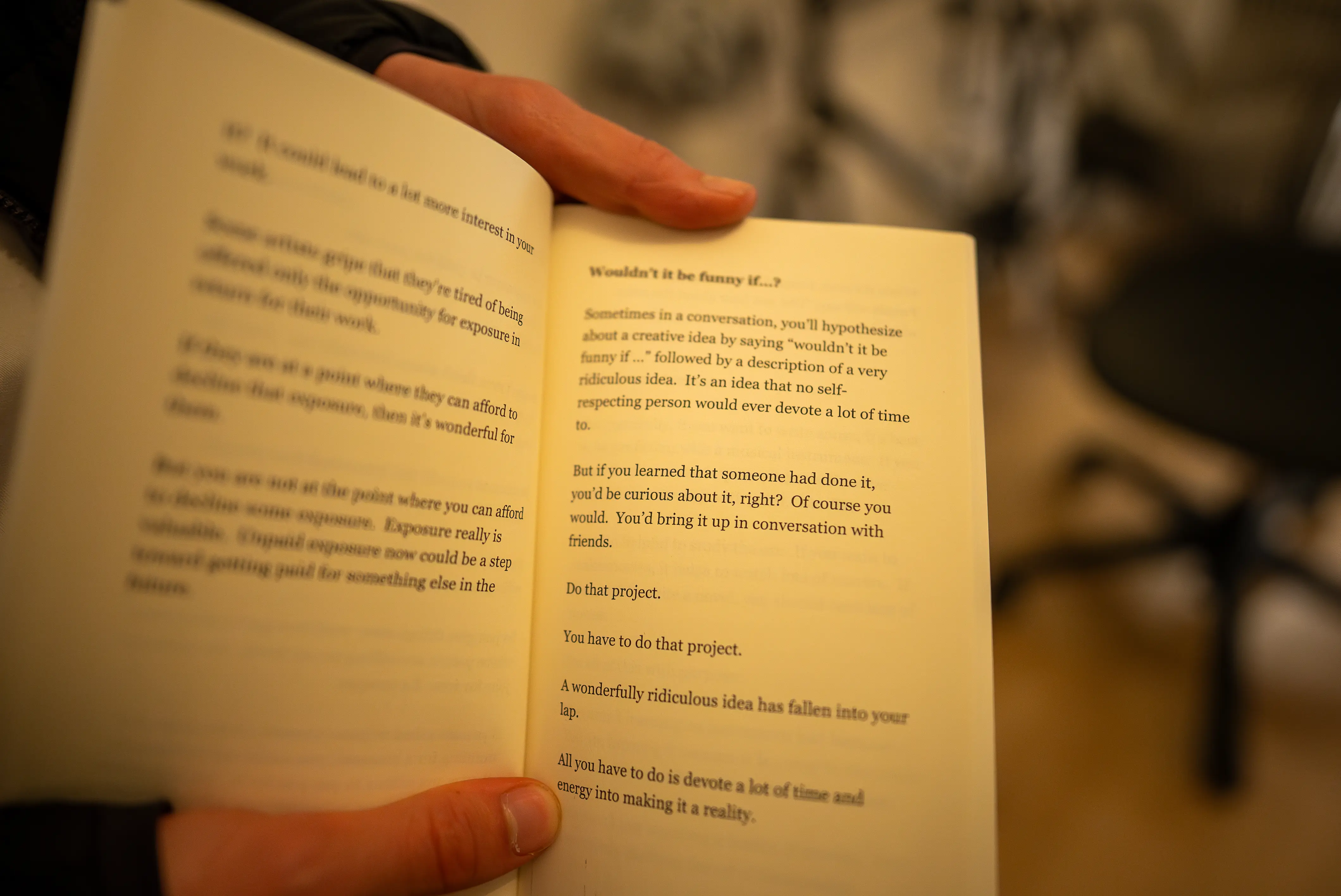 Riley owns 4 copies of his book, and he gave me one in response to my frequent complaints about my own creative process. We had a conversation the other day: